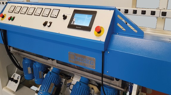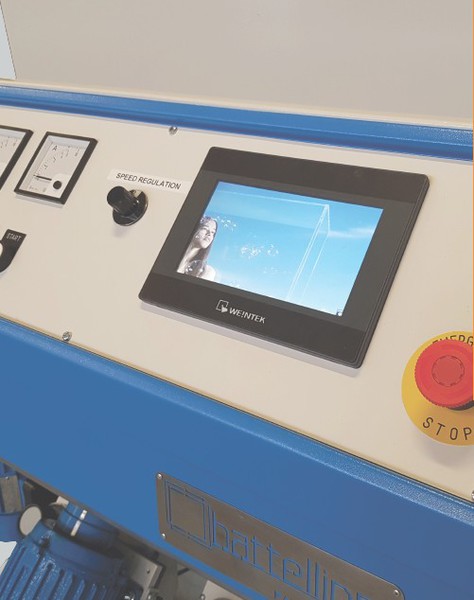 Un écran tactile multilingue permet de régler facilement la vitesse de travail, l'épaisseur du verre, les opérations des moteurs pneumatiques et le fonctionnement de la pompe à eau.
